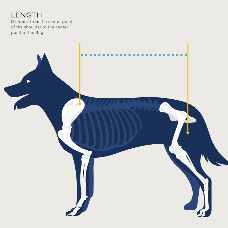Length: Distance from the center point of the shoulder to the center point of the thigh