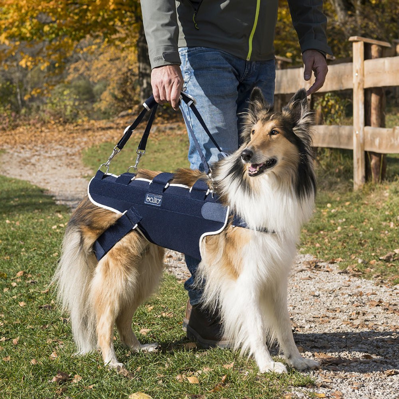 The Balto® Body Lift supports and compresses the spinal column with two removeable rigid splints contained within side pockets of the brace. This body harness is a comfortable solution for dogs with difficulty walking due to trauma, disease, or paralysis.